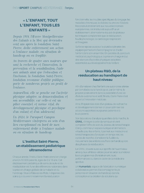 établissement pédiatrique de soins de suite et de sportive. bien de l’ensemble. Pour ce faire, la Fondation