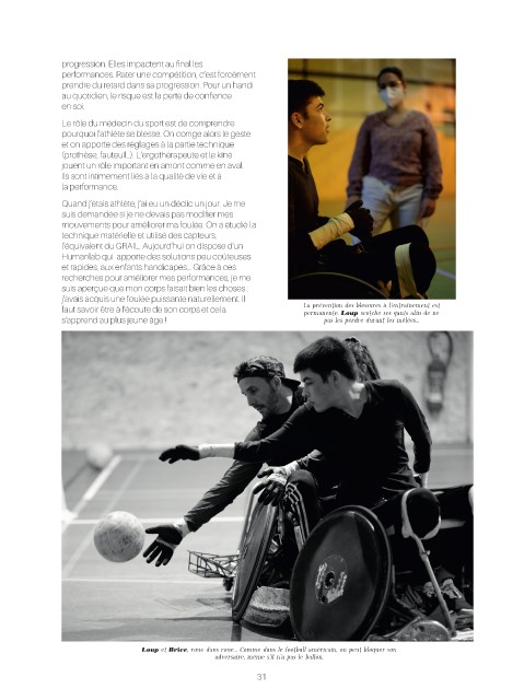 sensibilisation du handicap et la promotion du sport Les blessures font partie de la vie du sportif. Loup et Brice, roue dans roue... Comme dans le football américain, on peut bloquer son